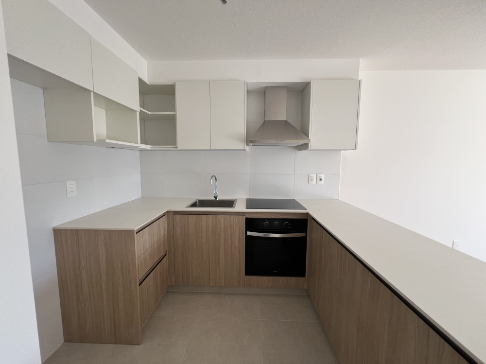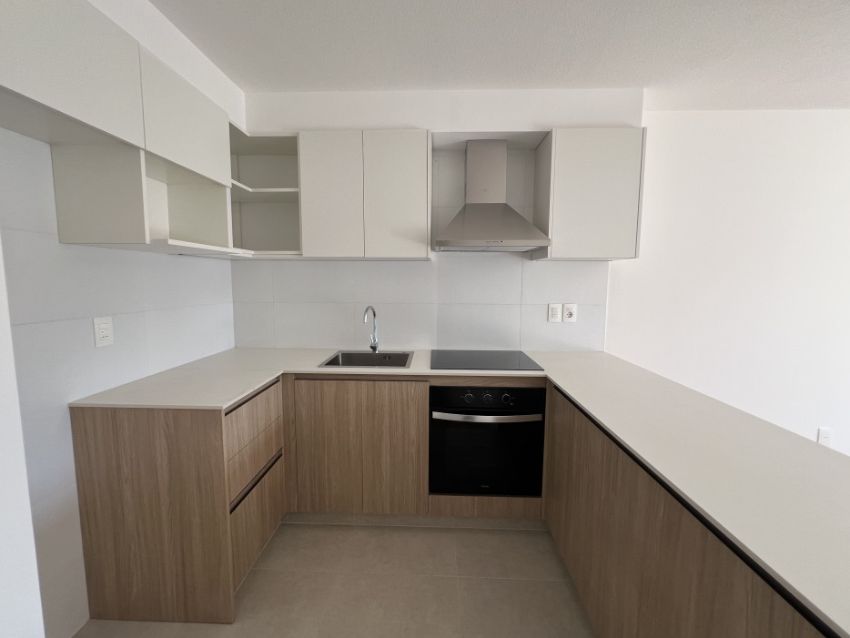 La cocina se entrega equipada con anafe, horno y campana, y cuenta con cómodos placares que brindan excelente capacidad de almacenamiento.