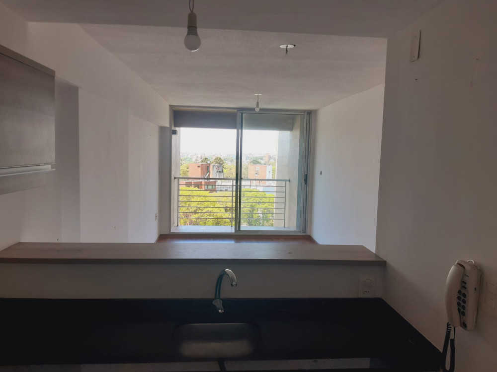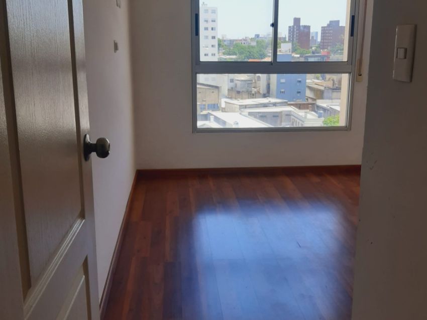 Av. Italia y Albo, frente al Parque de los Aliados; piso alto, excelente vista. Living-comedor con balcón al frente, cocina integrada, un dormitorio con placares y baño. Además cuenta con cochera.