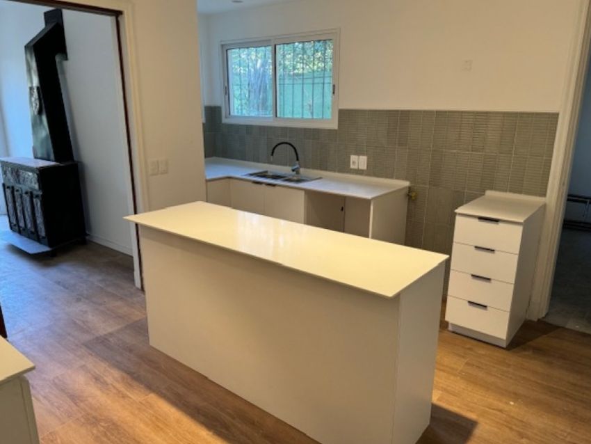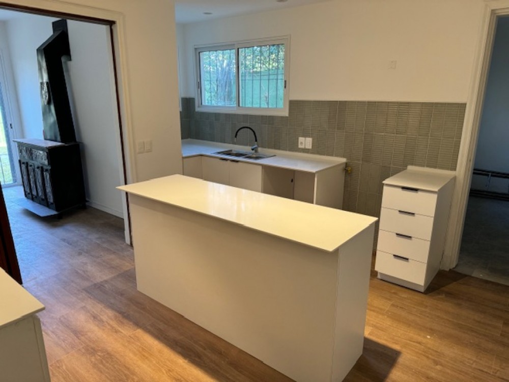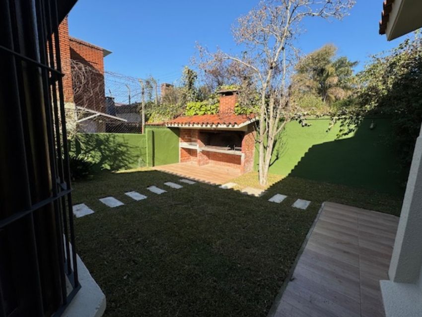 Amplio jardin con estacionamiento para varios vehiculos, amplio living-comedor con hogar, comedor, cocina moderna grande, estar diario con hogar.