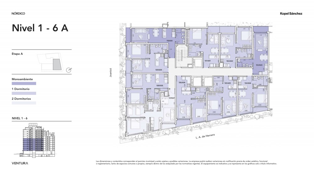 El proyecto se enmarca bajo la ley de vivienda promovida y se divide en 3 etapas(A, B y C), con un total de 209 unidades. Monoambientes, 1 dormitorio y 2 dormitorios.