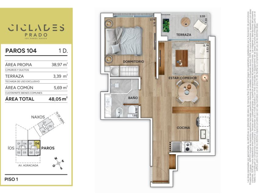 Actualmente en construcción, "Cíclades Prado" tiene prevista su entrega para junio de 2026, lo que lo convierte en una excelente oportunidad tanto para vivir como para invertir en una zona en constante valorización. El proyecto se ampara bajo los beneficios de la Ley de Vivienda Promovida.