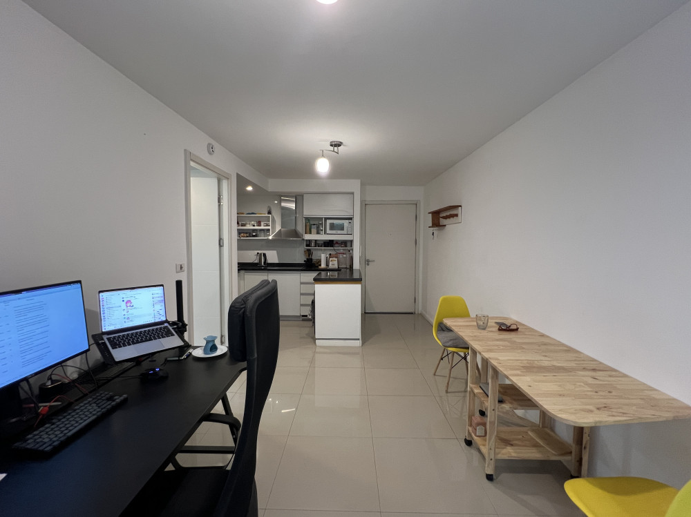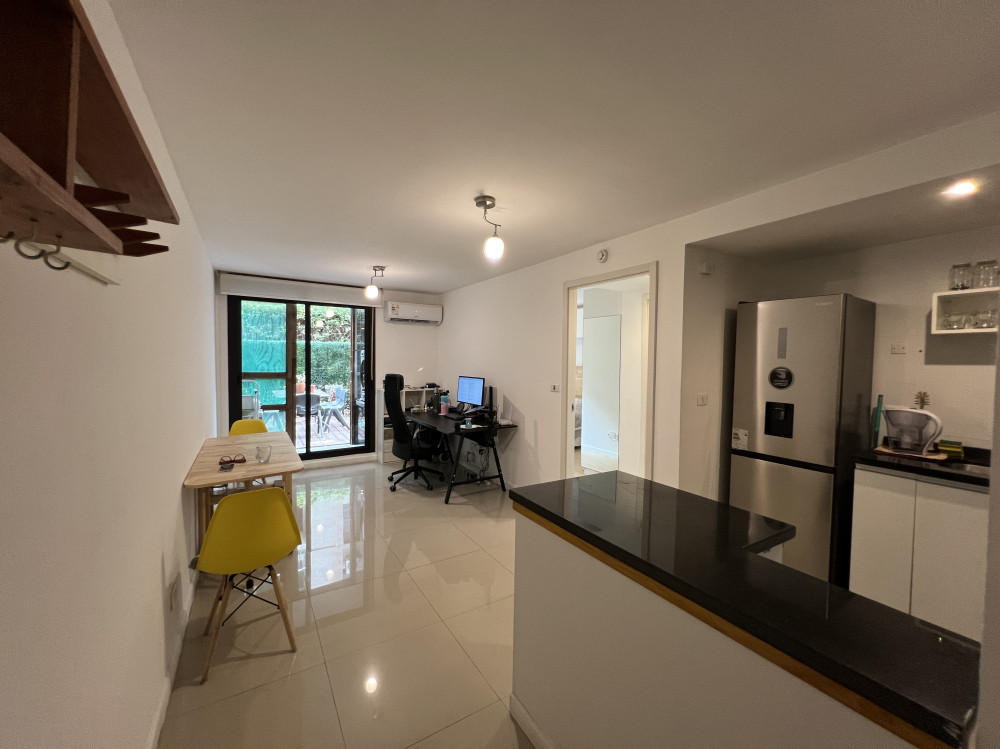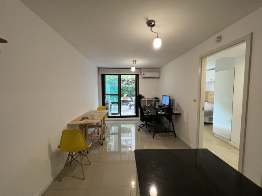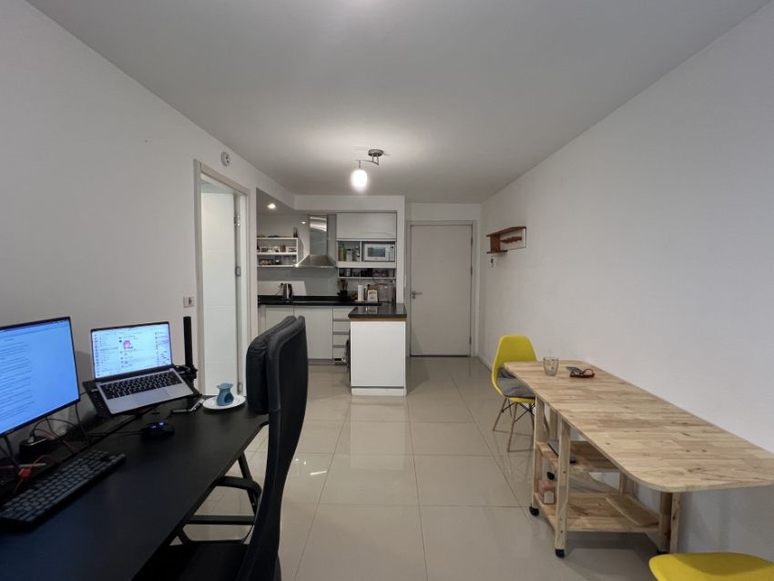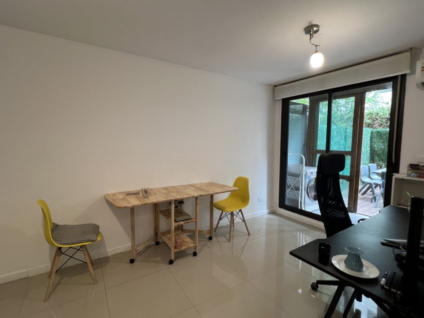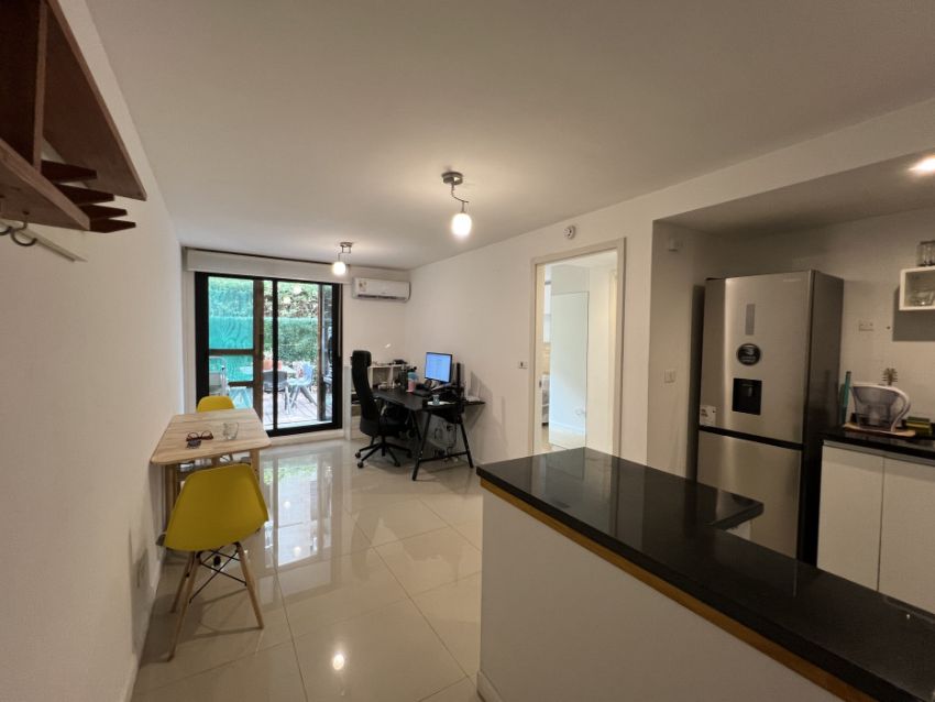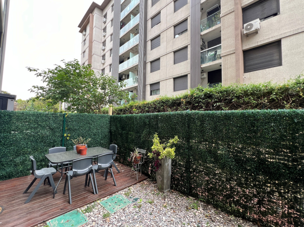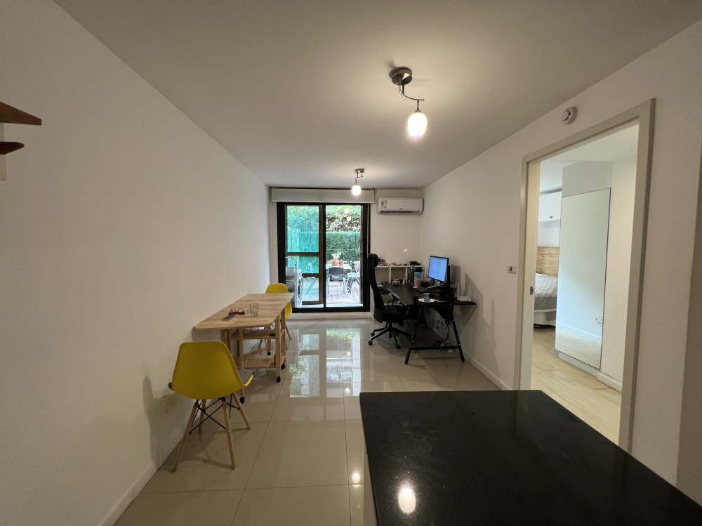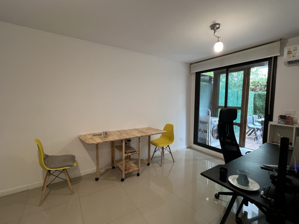 Apartamento en planta baja. Living-comedor con cocina integrada, baño con mampara y dormitorio con placard. Además tiene patio amplio y lavadero. El complejo cuenta con portería, cerca perimetral y cámaras. Dentro del mismo hay canchas multiuso, parrilleros, minimercado y precioso espacio verde.