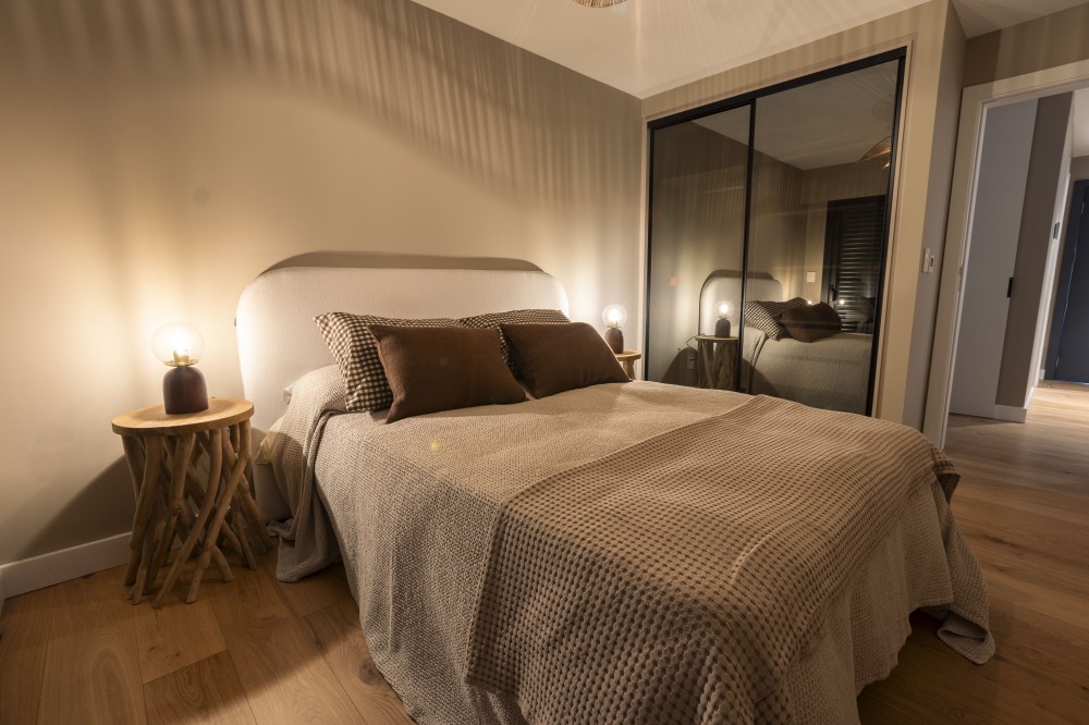 Compuesto por 3 niveles, con unidades de 1 y 2 dormitorios, apartamentos espaciosos con cocheras individuales y dobles, bauleras y barbacoa de uso común.