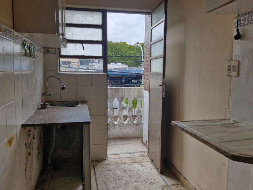 Apartamento en primer piso por escalera, próximo a Burgues. Living-comedor con salida a pequeño patio, cocina definida con terraza de servicio, 2 dormitorios y baño. Tiene acceso a azotea de 58m2 con parrillero techado. No tiene gastos comunes.
