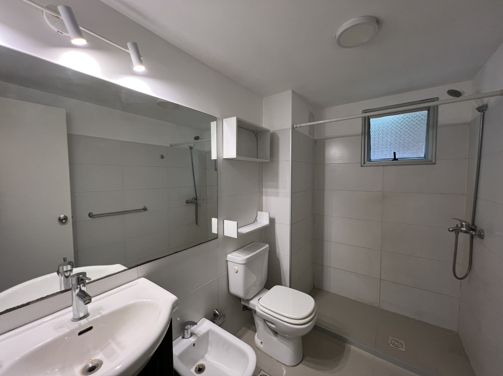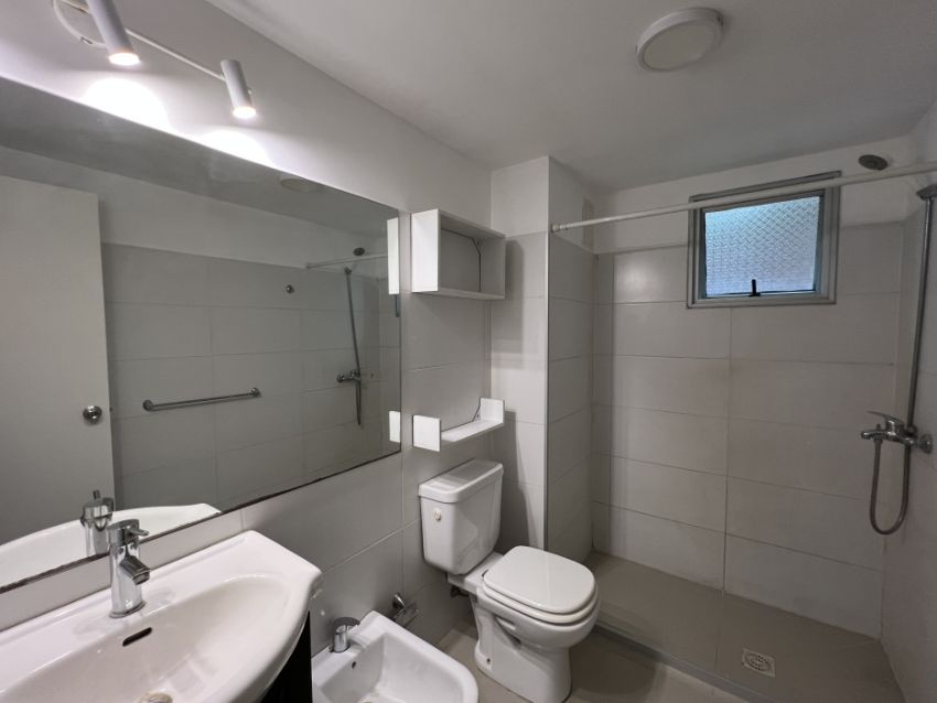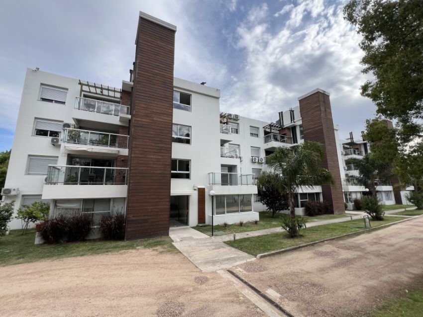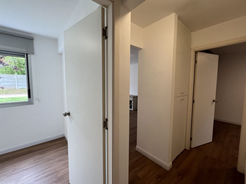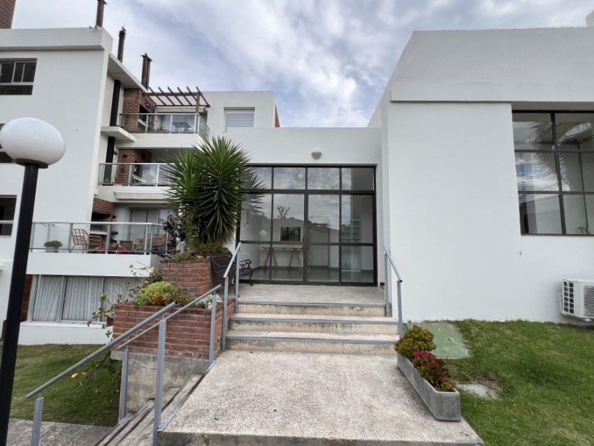 La unidad dispone de cochera propia, y el predio ofrece espacios verdes amplios y una barbacoa con parrillero de uso común.