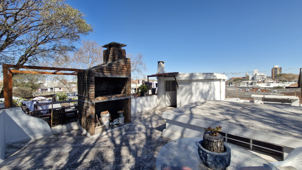 Casa en planta alta. Living-comedor, cocina cómoda, 2 dormitorios, baño y altillo con acceso a azotea con parrillero. Tiene un amplio garaje para 2 autos con baño, que puede ser un monoambiente o taller.