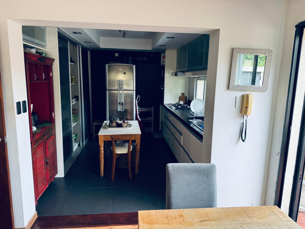 PB: Living con hogar, amplia cocina moderna con comedor diario y baño. Cuenta con 2 patios, uno verde de 53m2 y otro con salida desde la cocina, con parrillero.