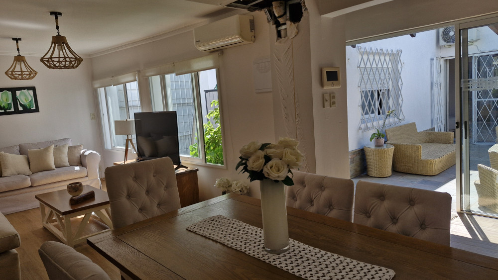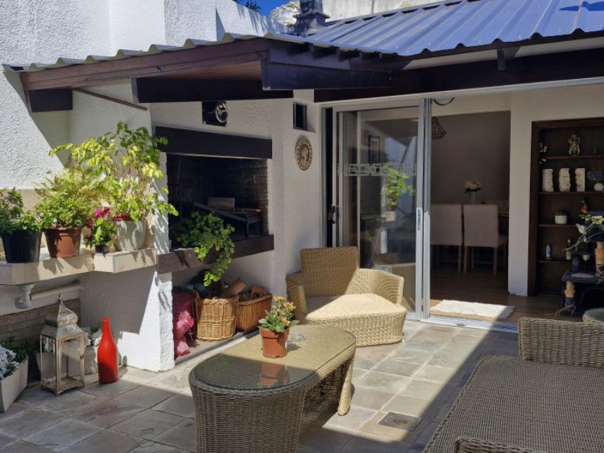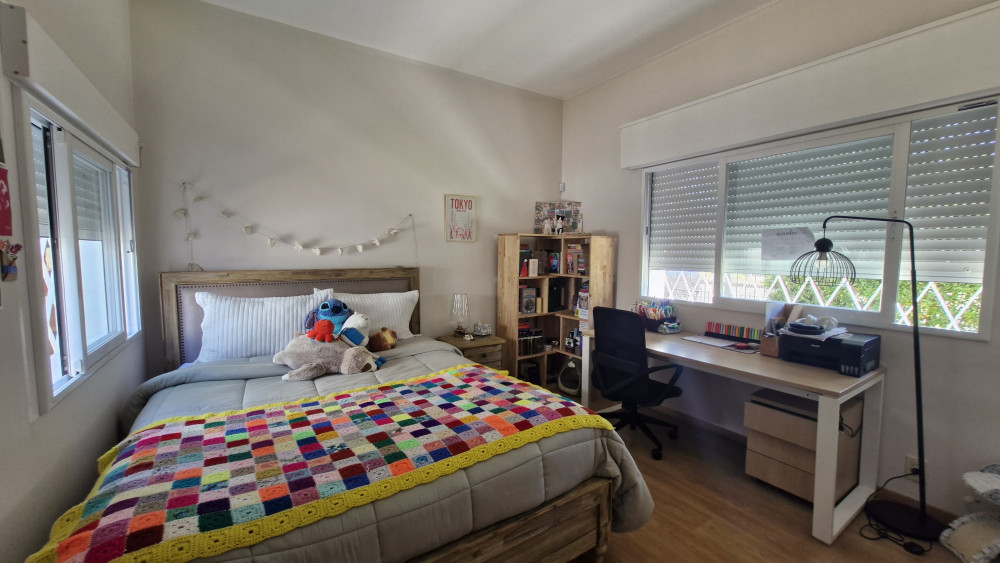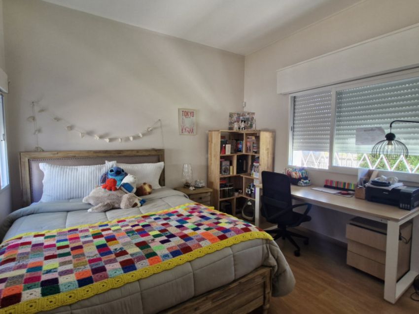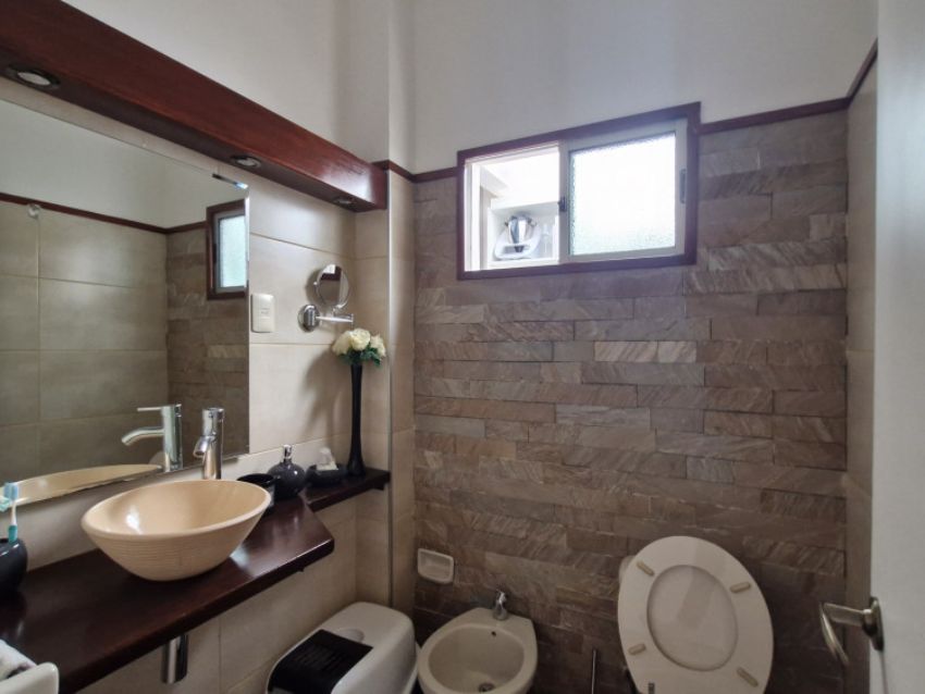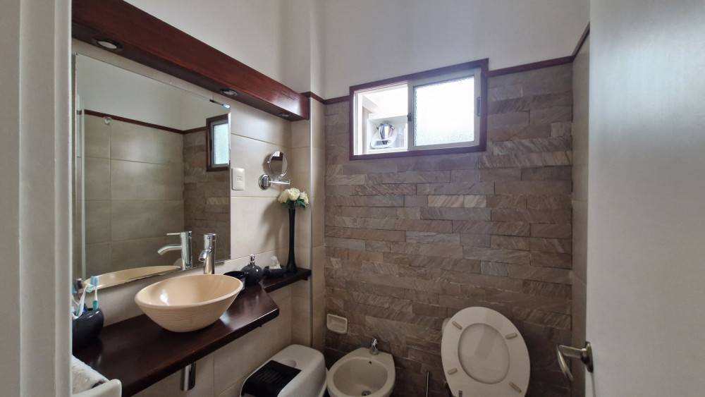 El área exterior ofrece un amplio patio con parrillero y acceso a una barbacoa o estudio/playroom con estufa a leña y baño social, con entrada independiente. La propiedad incluye cochera para uno o dos vehículos.